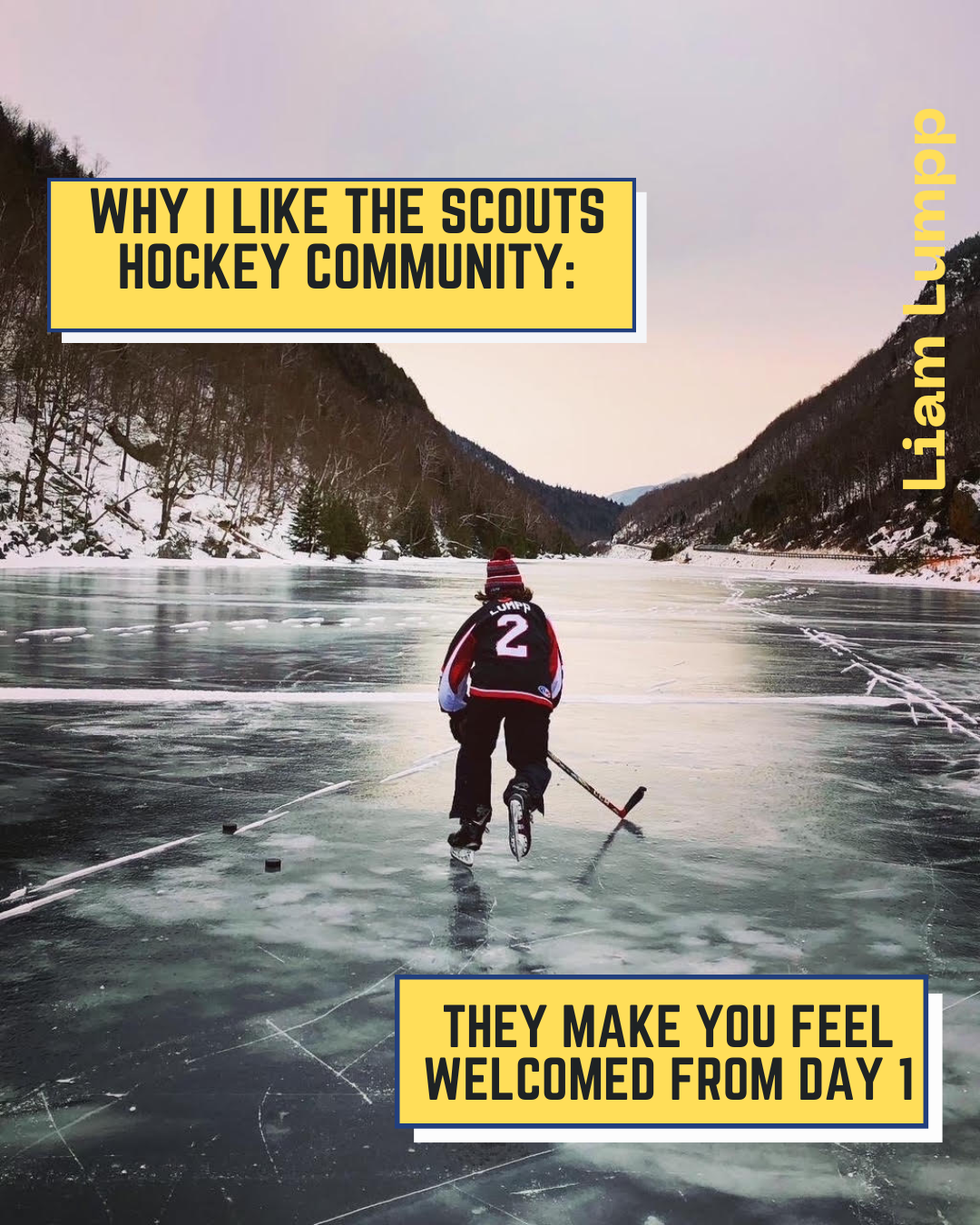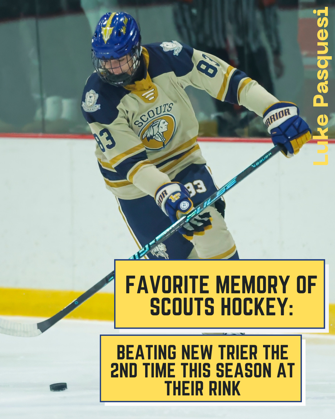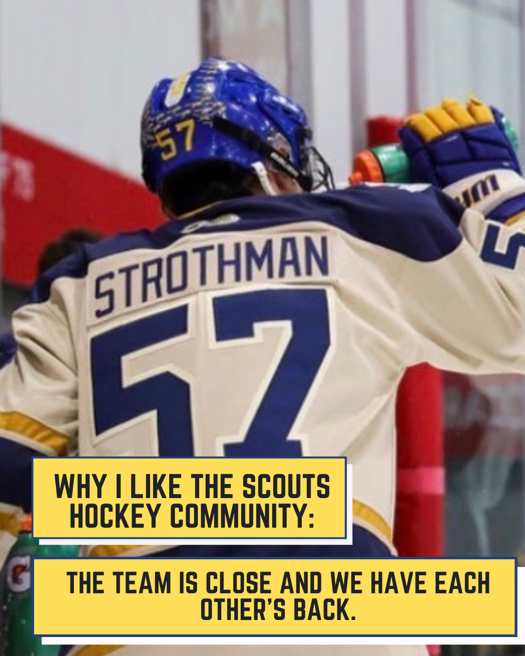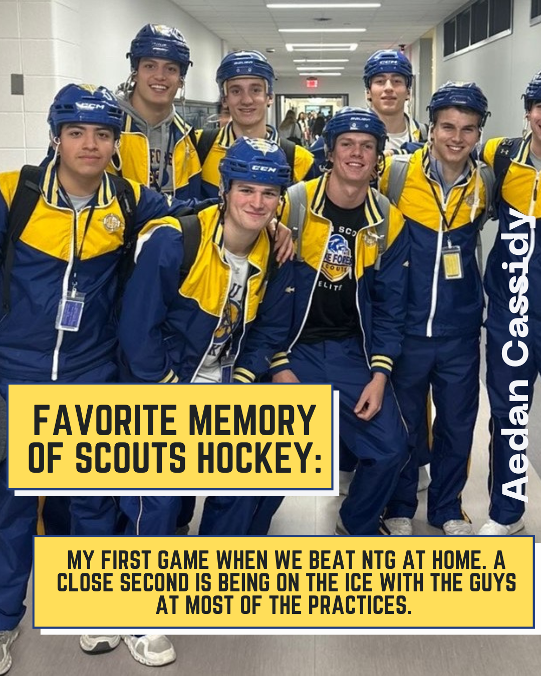 From Nick Himself: "For three years I have seen my friends wear suits to school on game-days, listened to a non-hockey-playing peer glorify an amazing game from the night before, and listened to stories my dad would tell me about his experience as a Scout. For three years I have wanted to be a