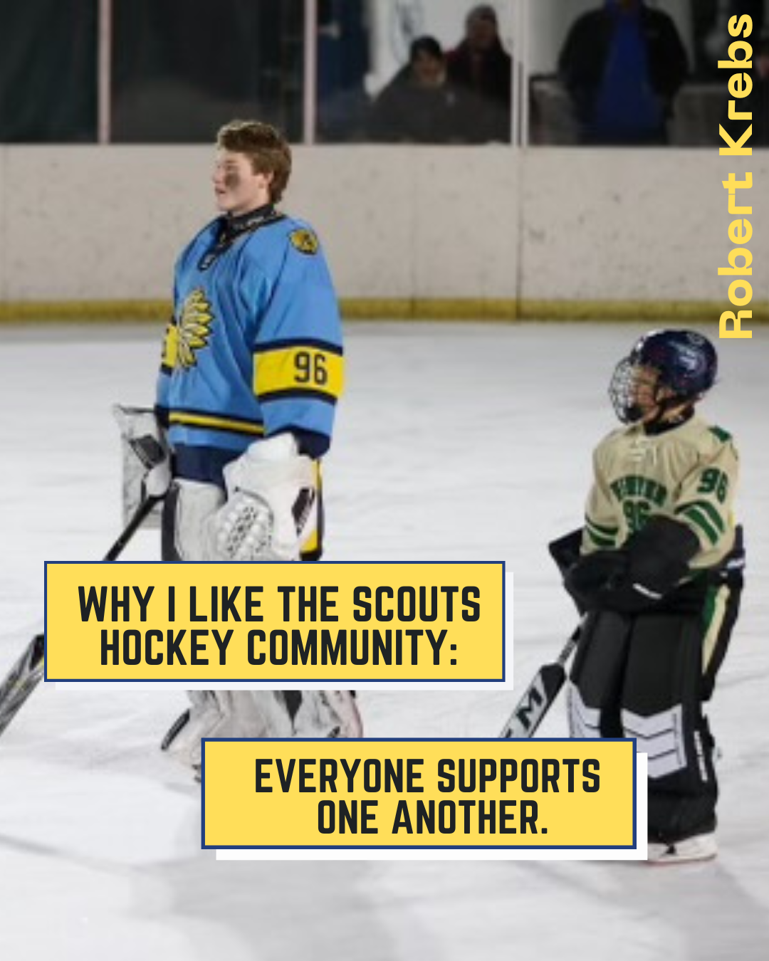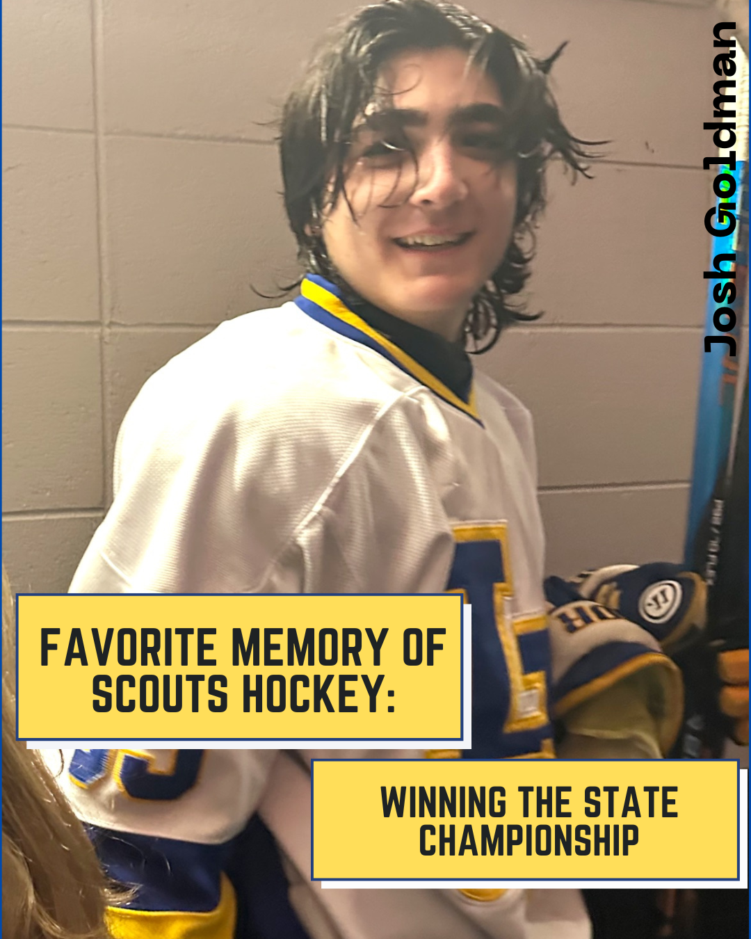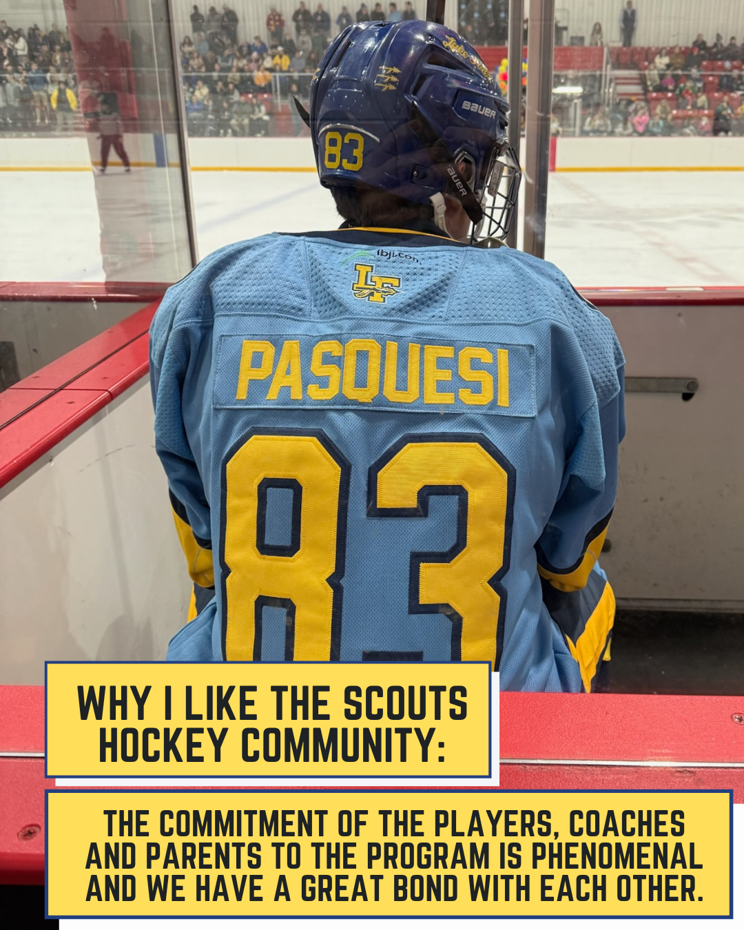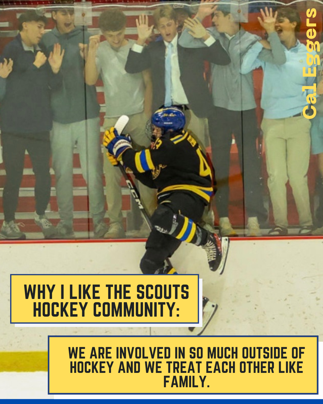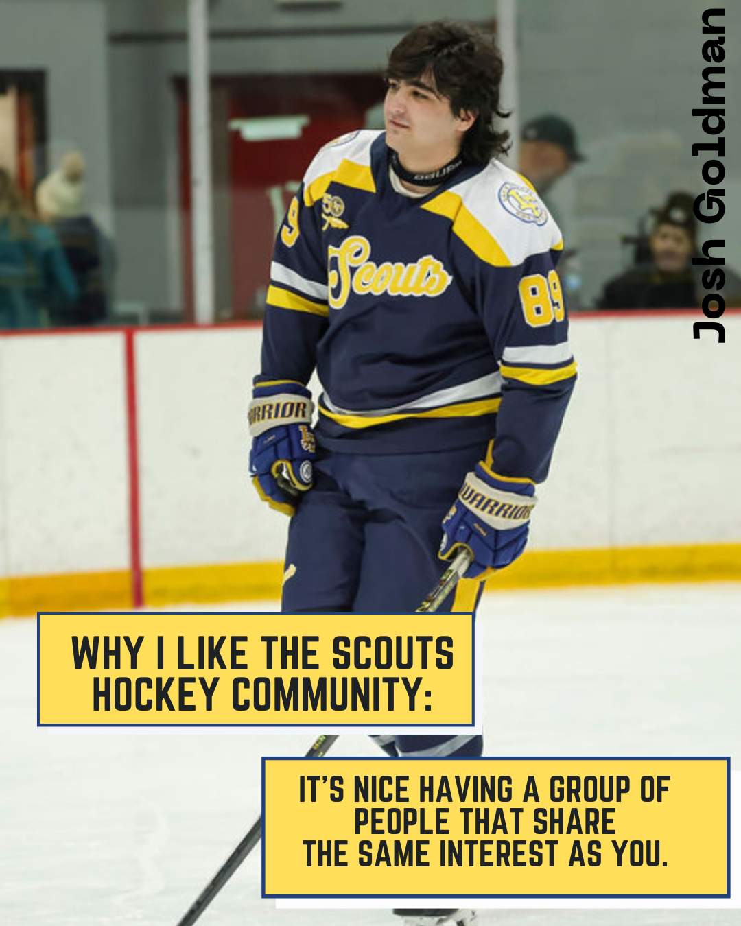 From Nick Himself: "For three years I have seen my friends wear suits to school on game-days, listened to a non-hockey-playing peer glorify an amazing game from the night before, and listened to stories my dad would tell me about his experience as a Scout. For three years I have wanted to be a