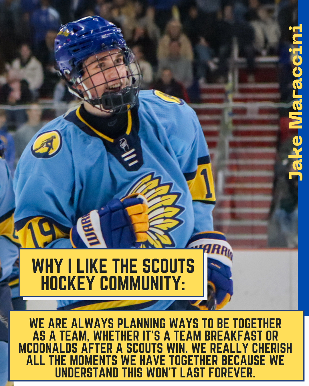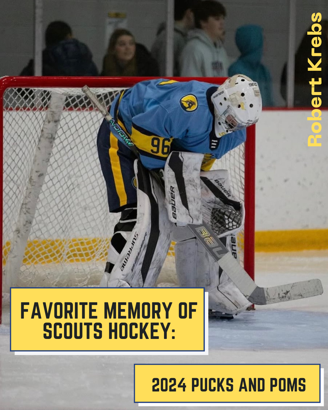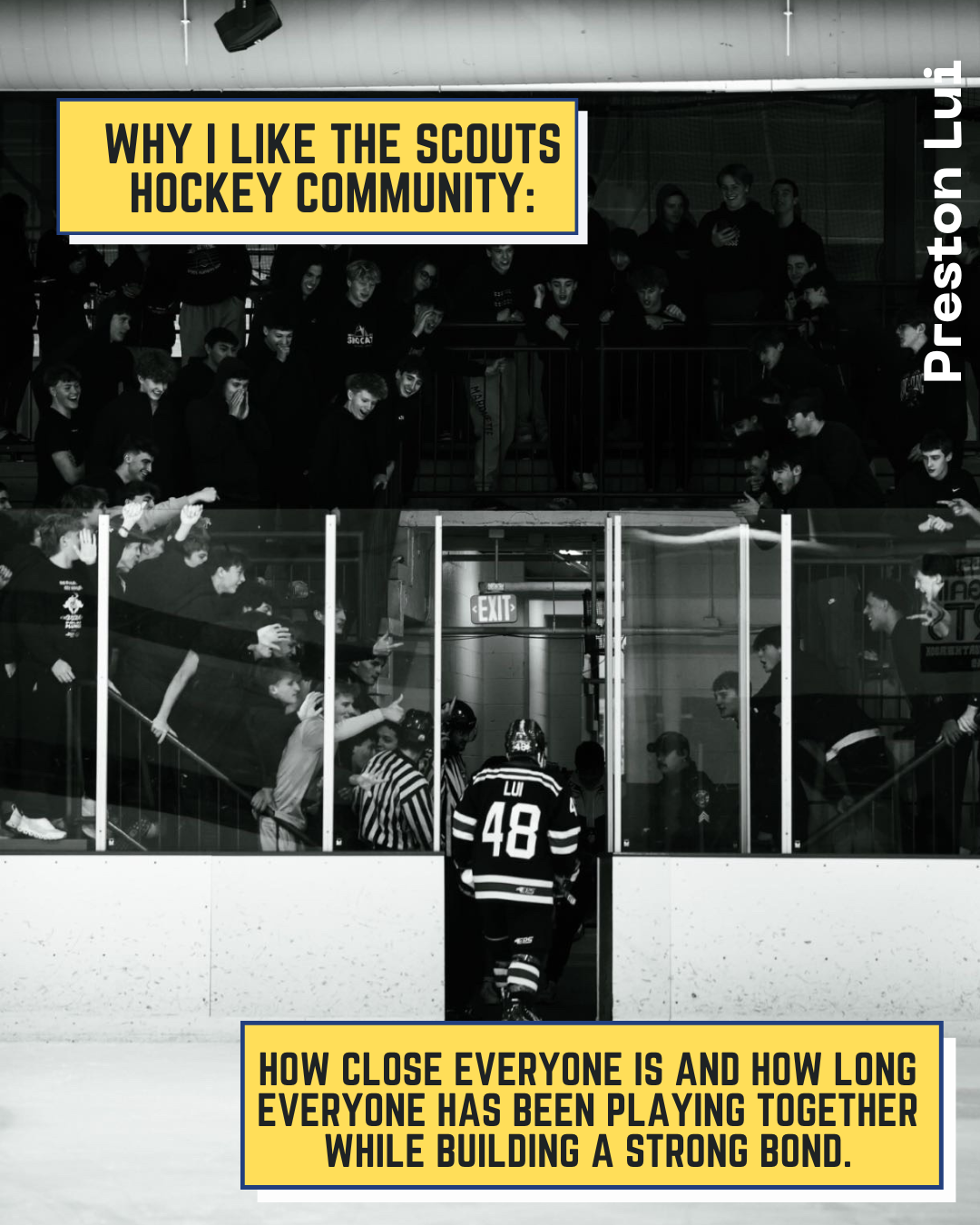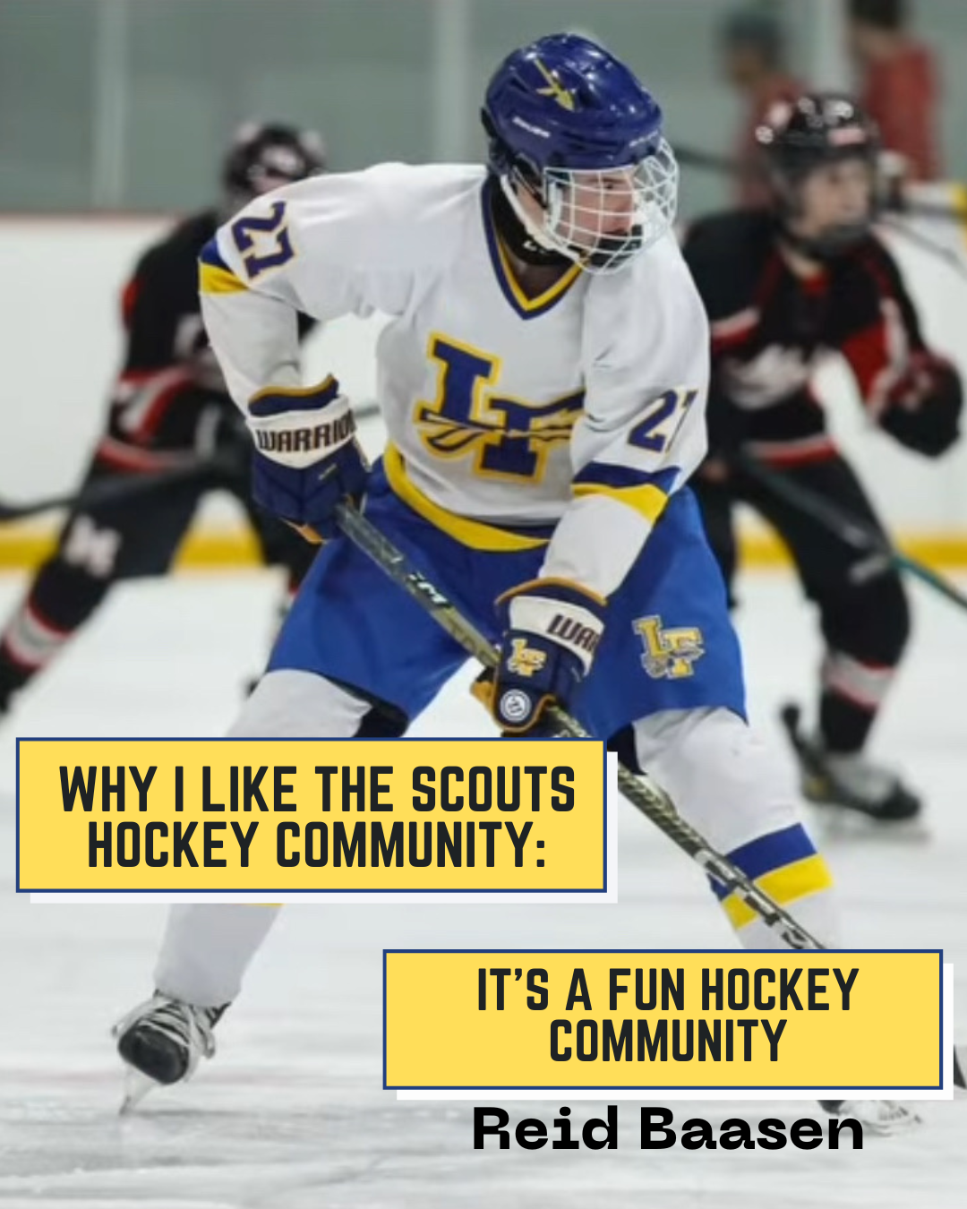 From Nick Himself: "For three years I have seen my friends wear suits to school on game-days, listened to a non-hockey-playing peer glorify an amazing game from the night before, and listened to stories my dad would tell me about his experience as a Scout. For three years I have wanted to be a
