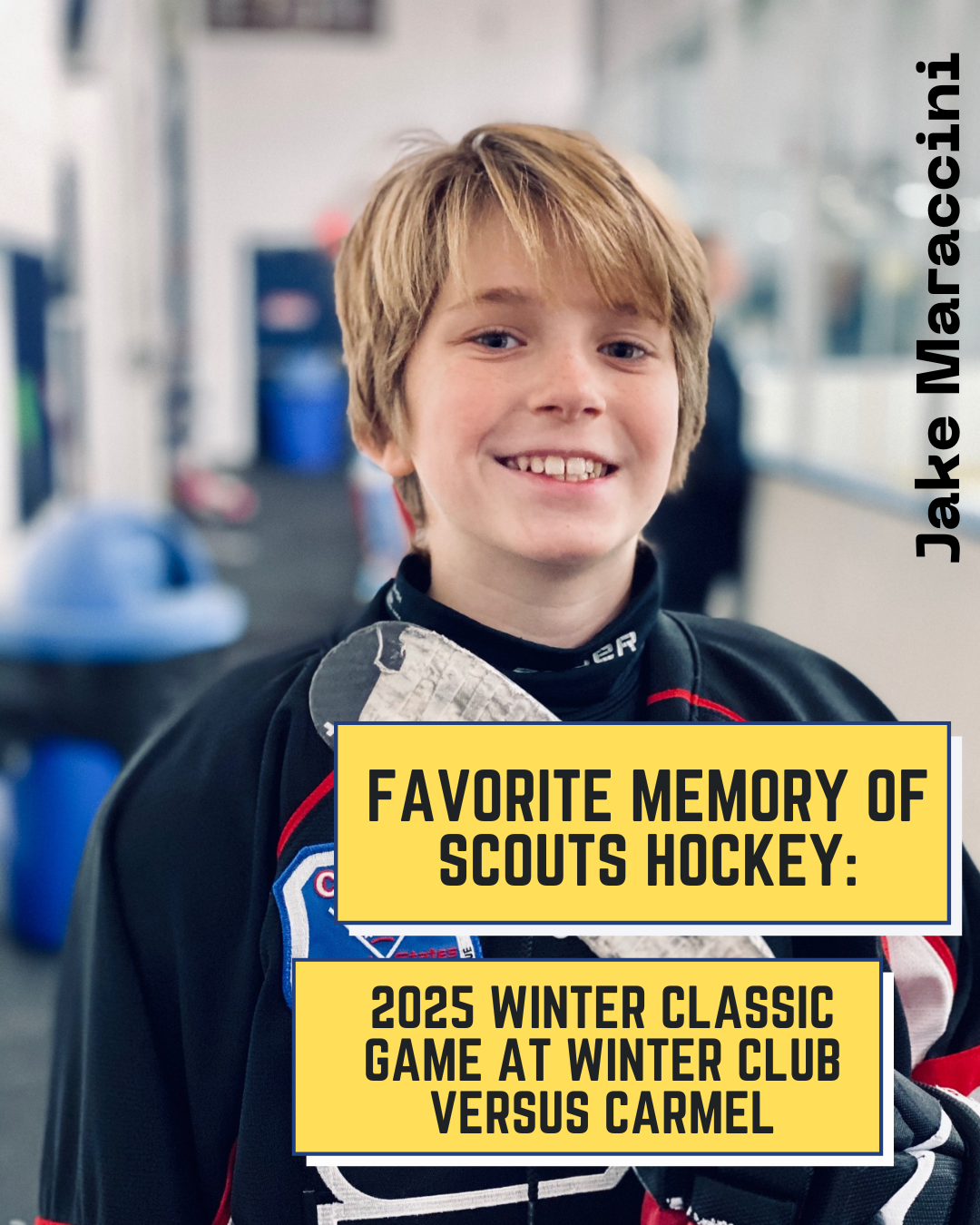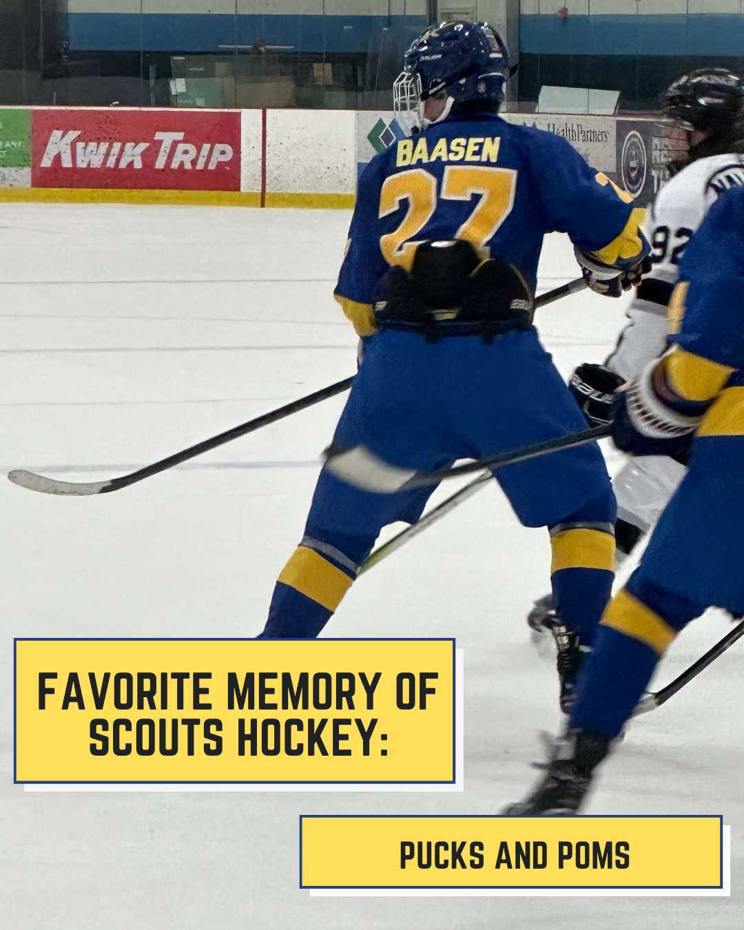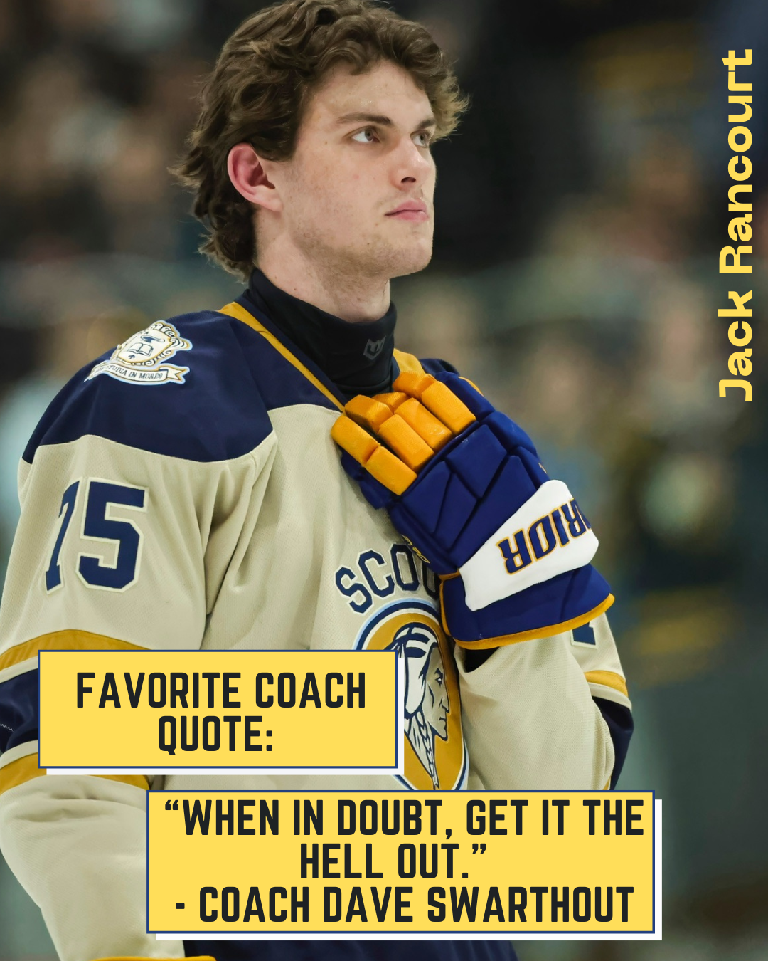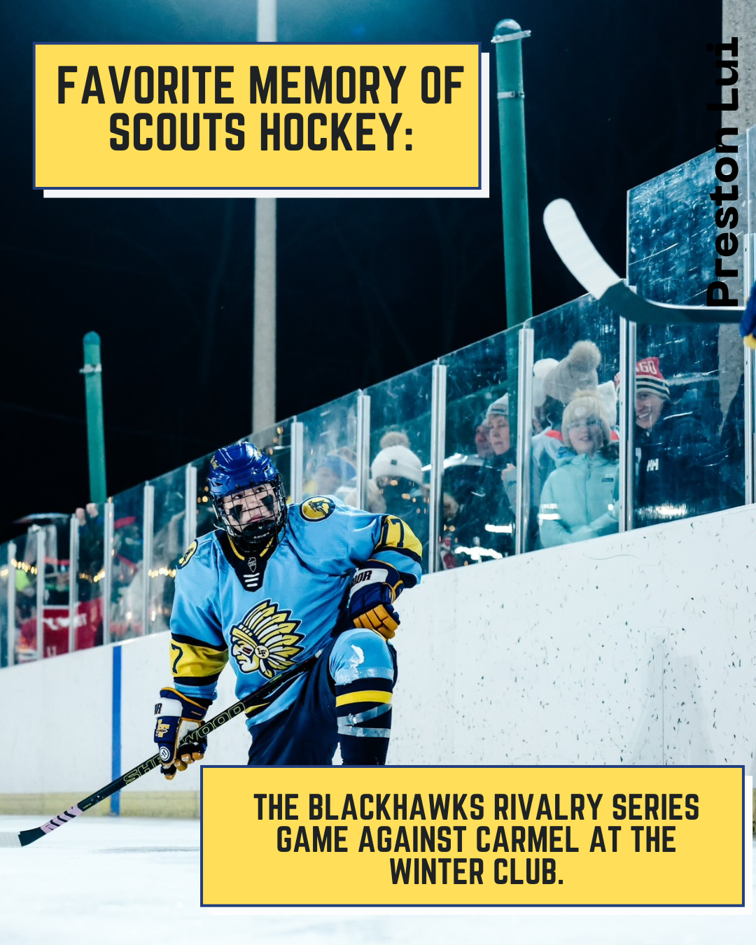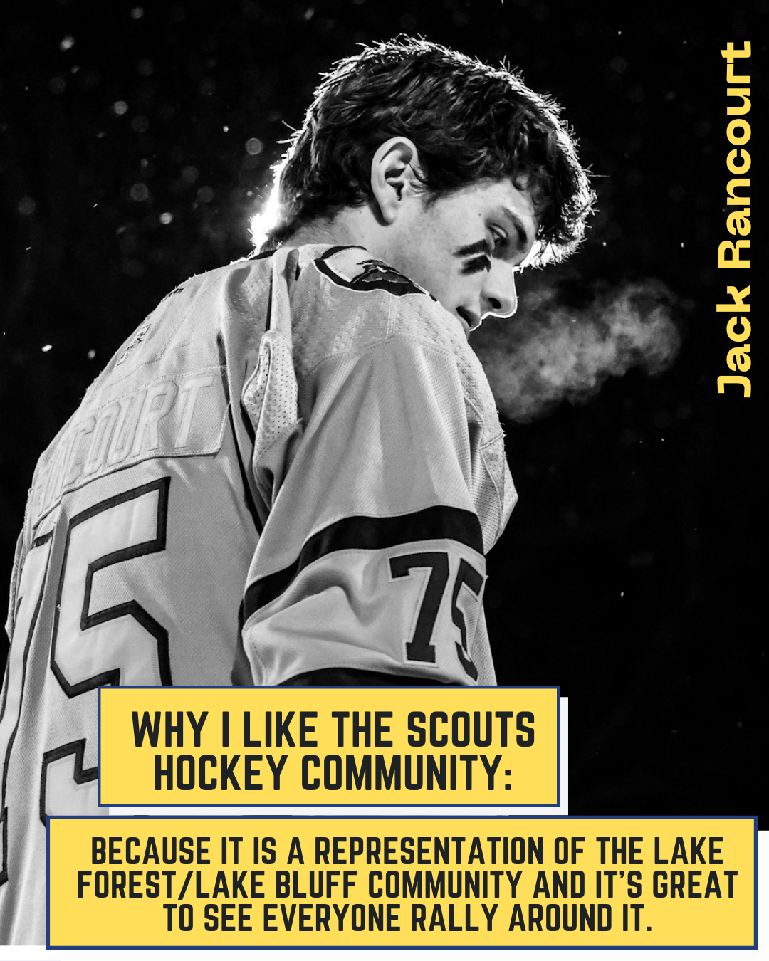 From Nick Himself: "For three years I have seen my friends wear suits to school on game-days, listened to a non-hockey-playing peer glorify an amazing game from the night before, and listened to stories my dad would tell me about his experience as a Scout. For three years I have wanted to be a