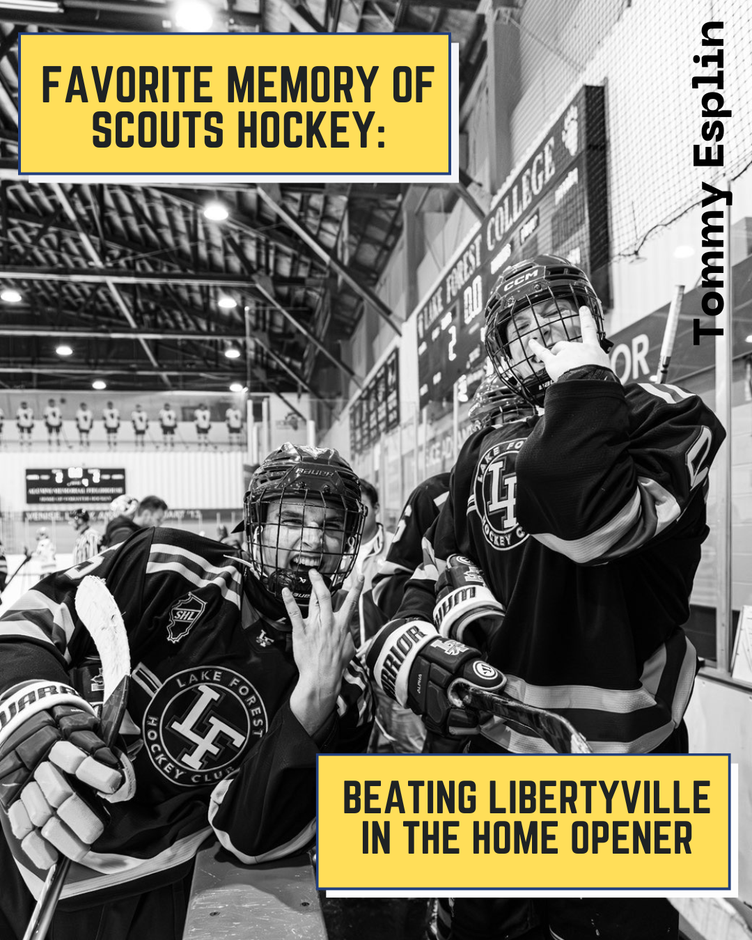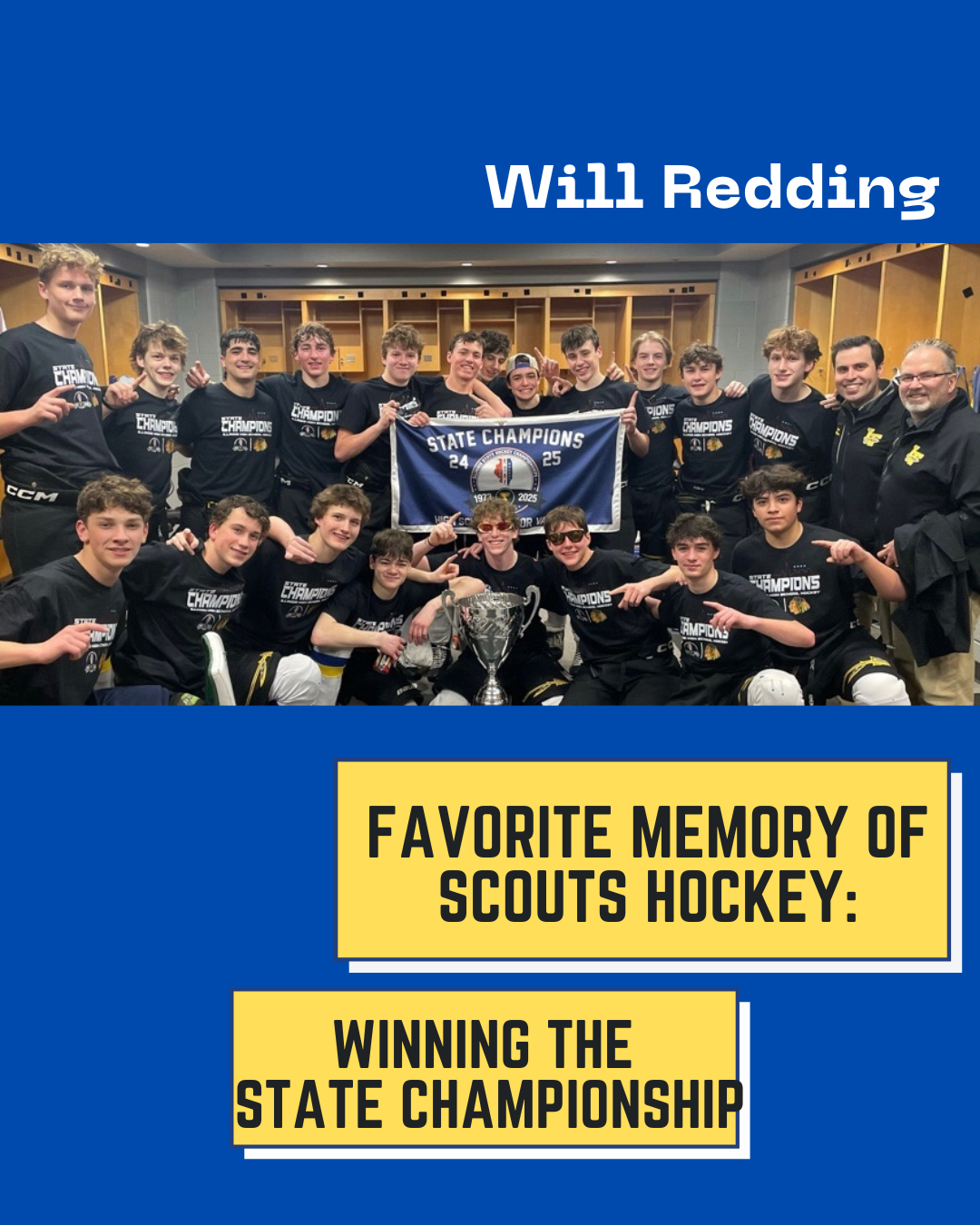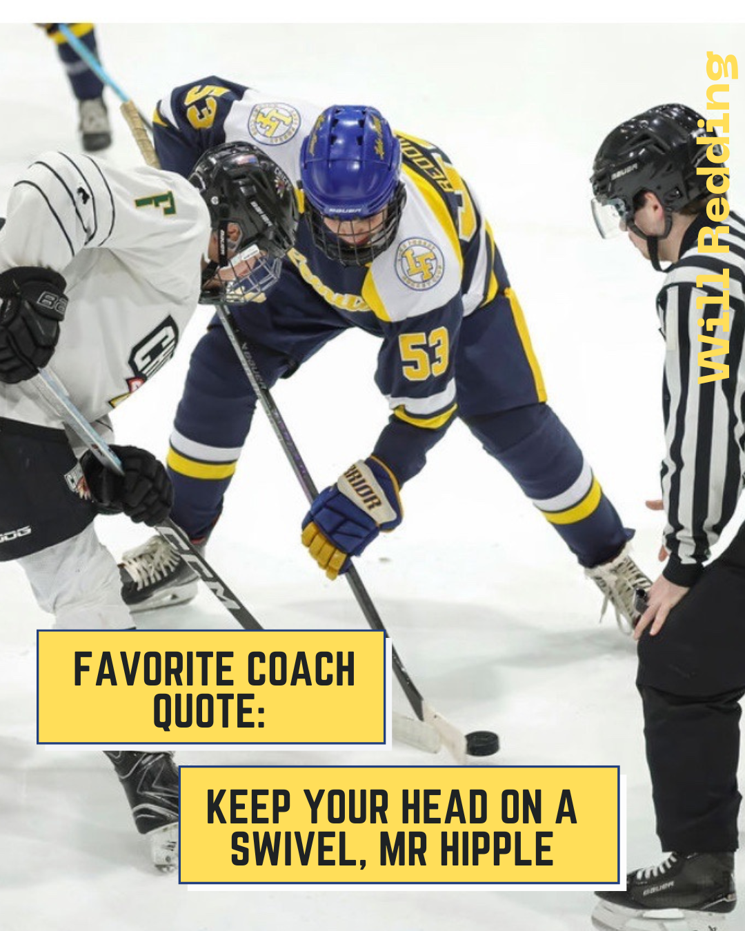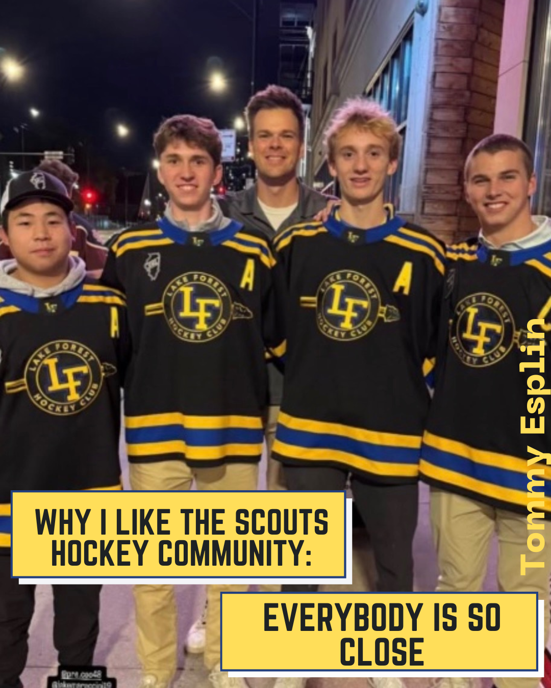From Nick Himself: "For three years I have seen my friends wear suits to school on game-days, listened to a non-hockey-playing peer glorify an amazing game from the night before, and listened to stories my dad would tell me about his experience as a Scout. For three years I have wanted to be a
