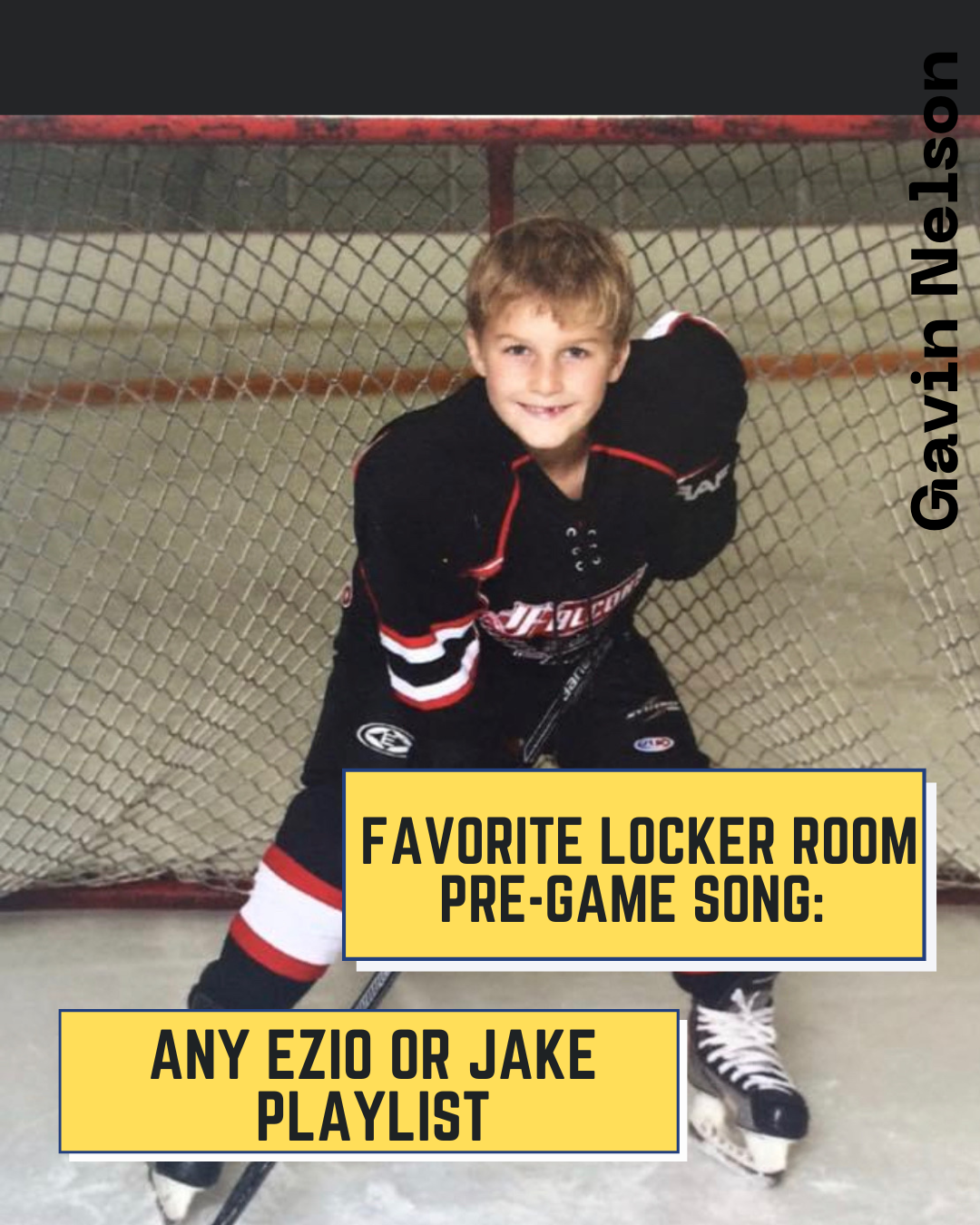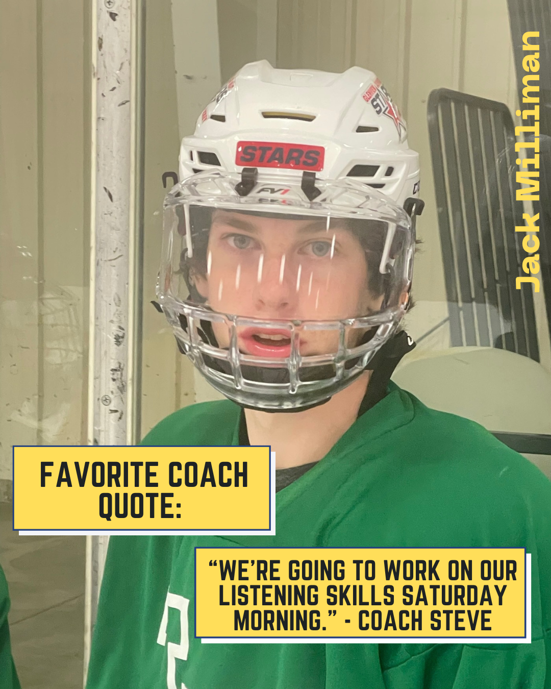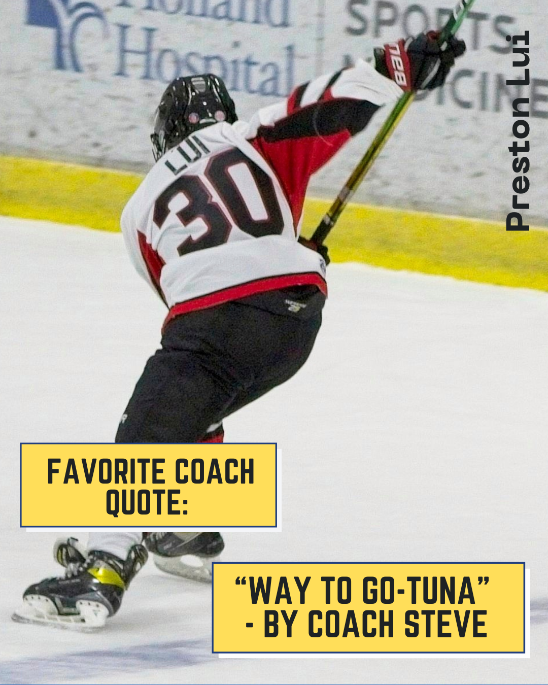 From Connor Himself: "Thank you to my parents for providing me with the skates and sticks since I could walk! Thank you to Coach Steve for being an awesome coach!"