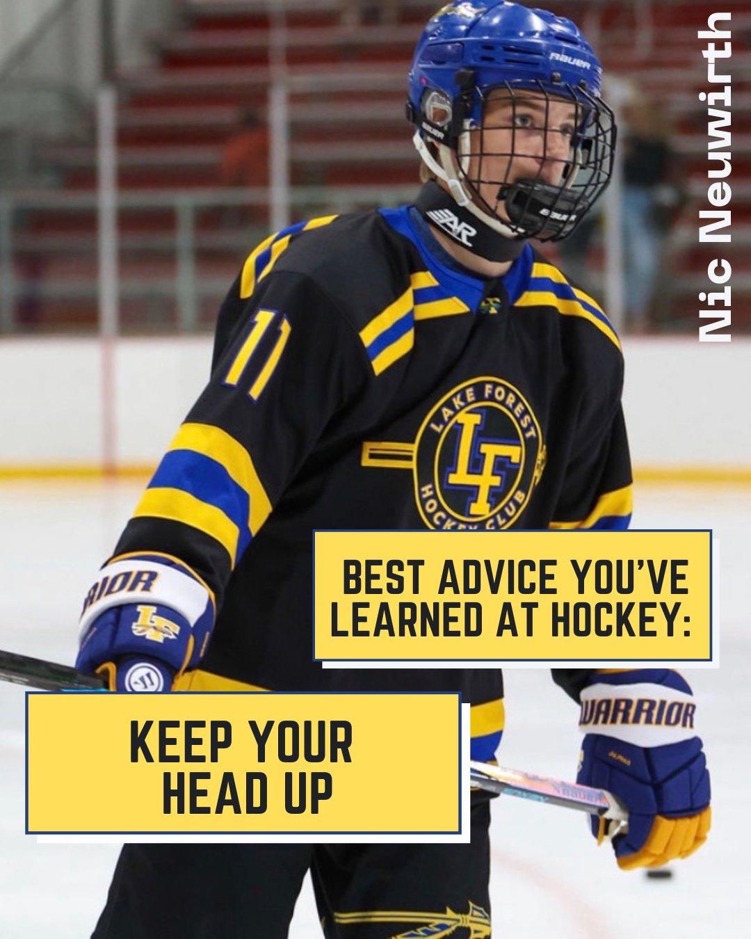 Hockey History: Nick started hockey at age 5 and has played for the Falcons, ChicagoYoungAmericans, Milwaukee Junior Admirals and the LFHS Scouts.