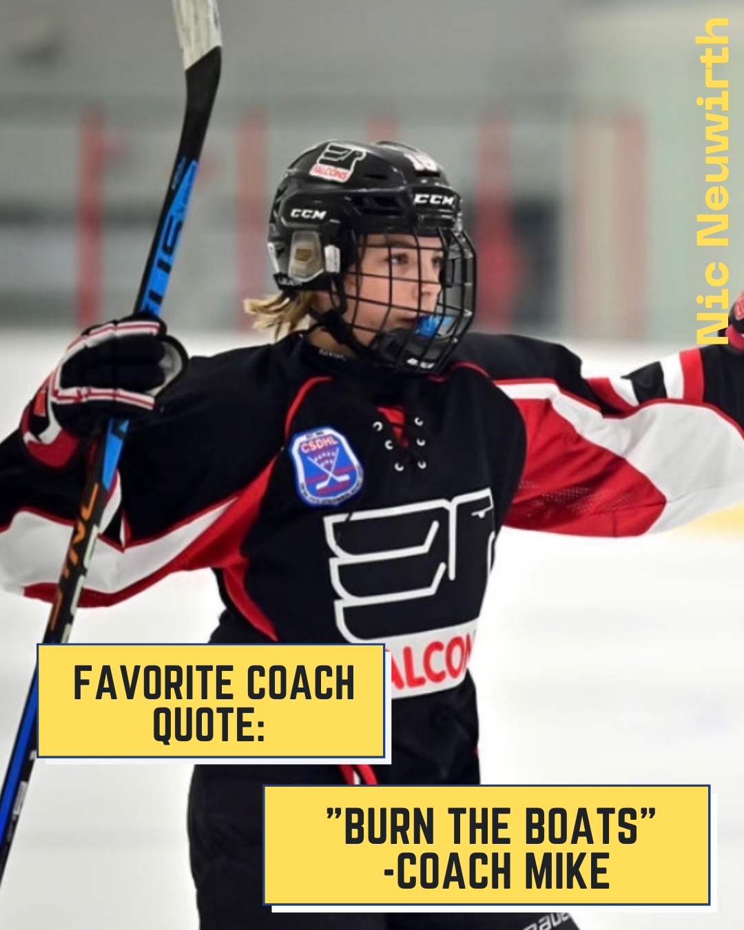 From Charlie himself: "Thank you to my coaches and teammates. It's been a great experience and I've enjoyed playing for Scouts hockey. Thanks to my parents for supporting my hockey career, especially my dad for coaching my Falcons teams and my mom for always supporting and encouraging me.