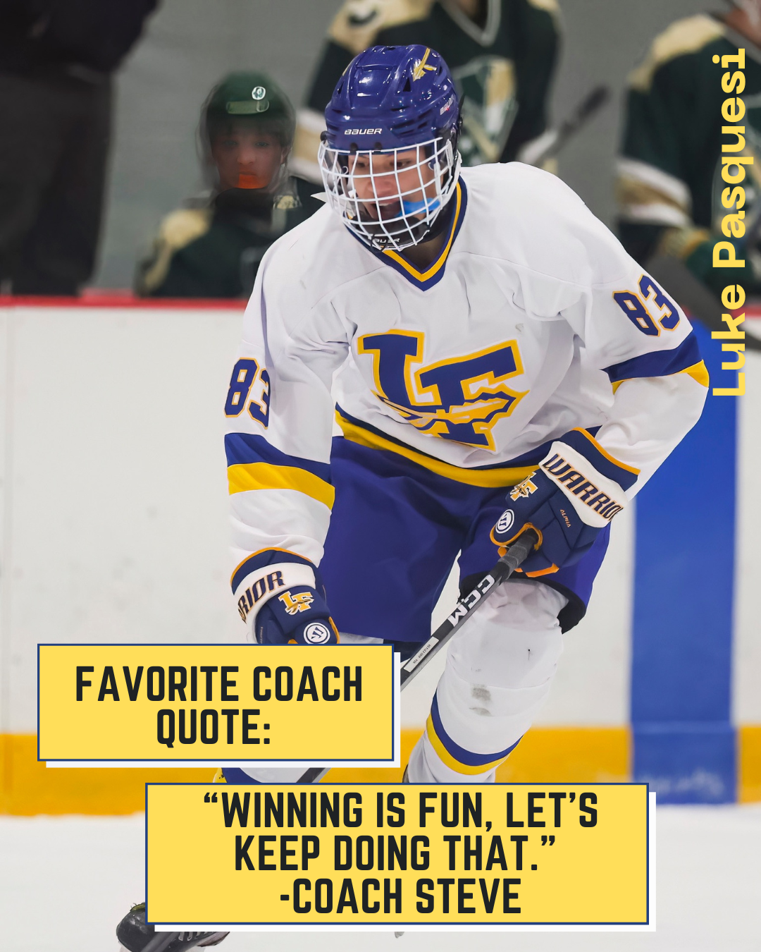 Hockey History: Matty started playing hockey at age 5 for the Winter Club and has played for the Ice Dogs and Falcons before spending two seasons as a LFHS Scout.