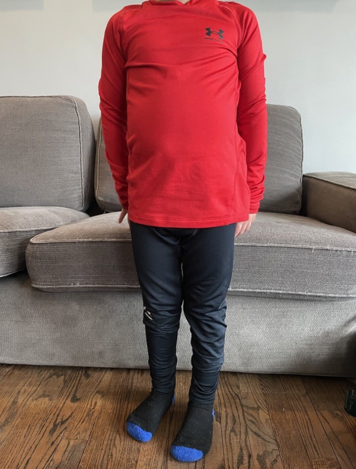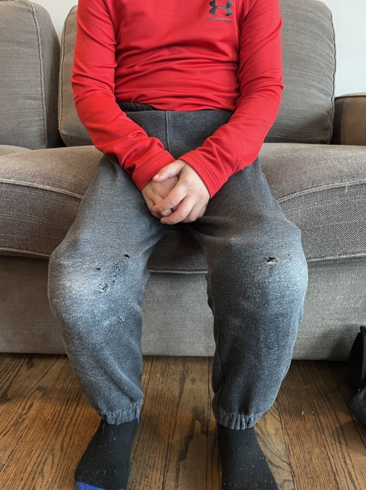 - Shin guards with larger sweatpants over the shin guards.
